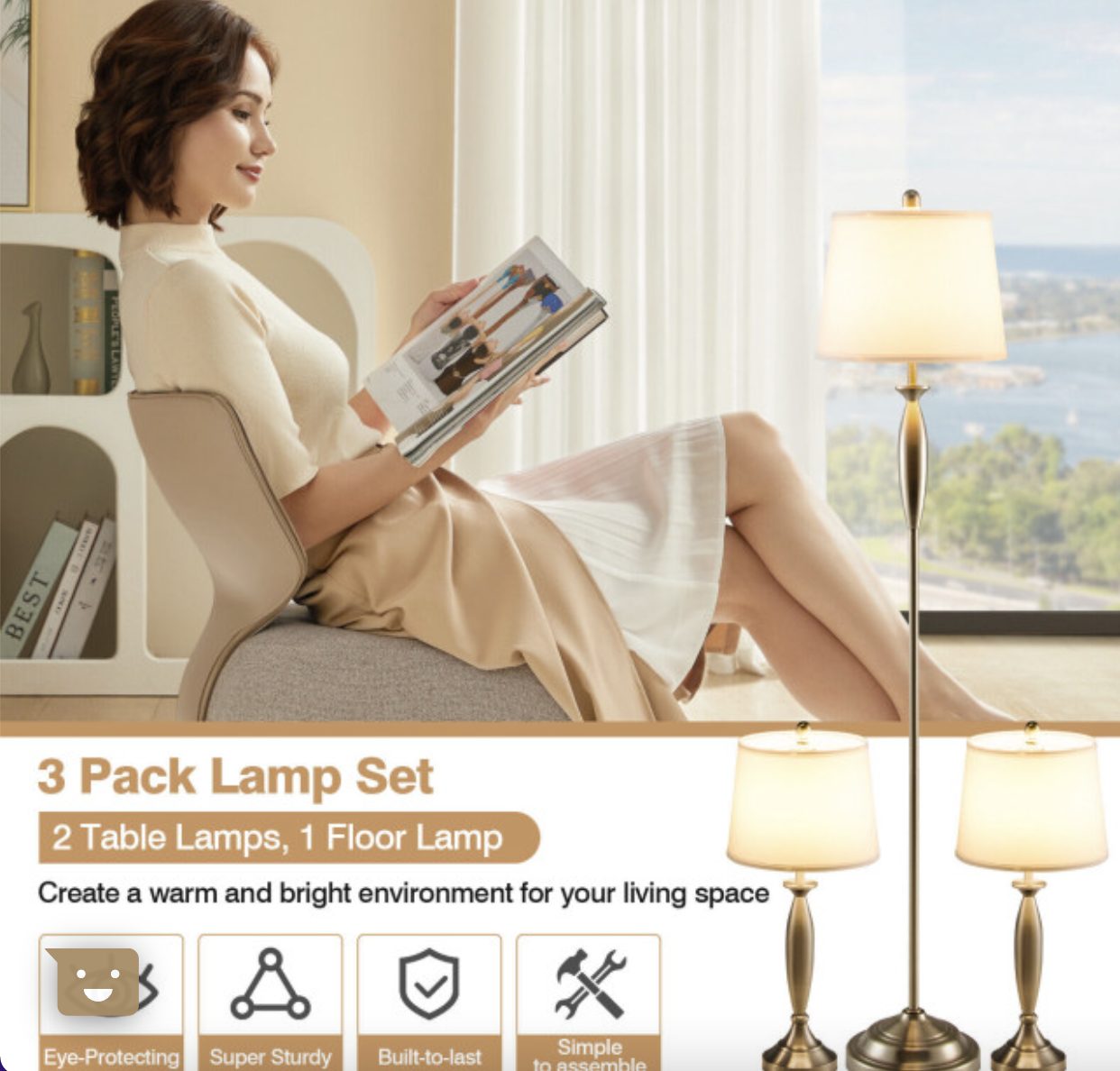 - Including 2 table lamps and 1 floor lamp, satisfying your multiple demands