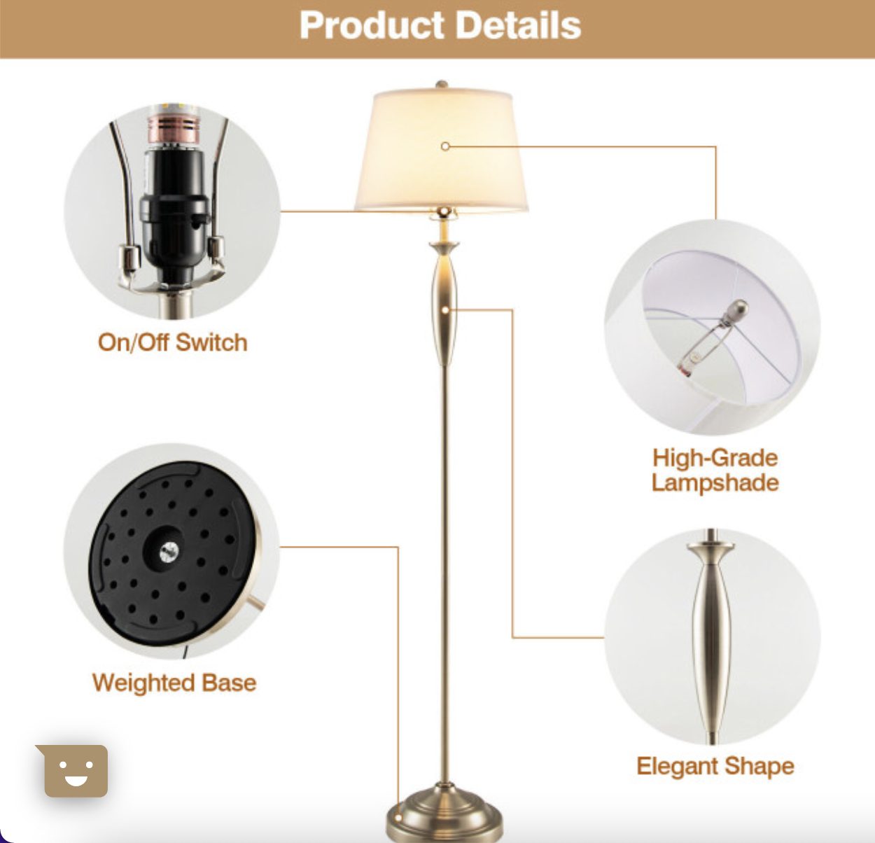 - Net weight of floor lamp: 9 lbs