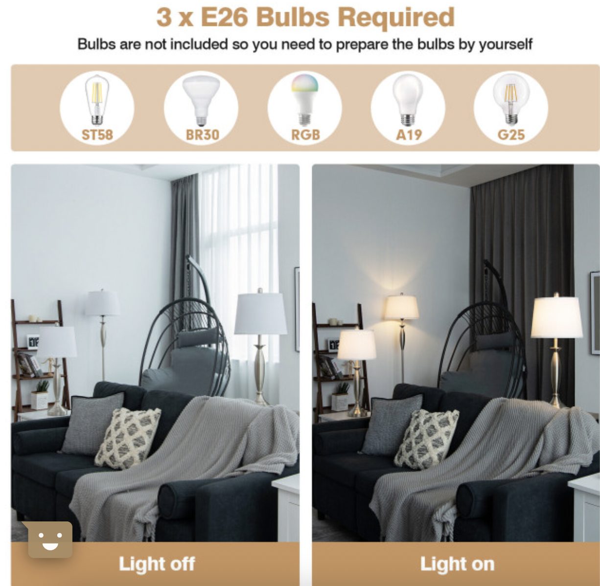 - Require E26 bulbs for each lamp (bulb not included)