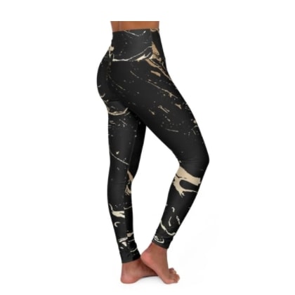 Leggings Full Length High-Waisted Black & Gold Marble Print