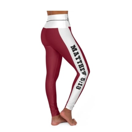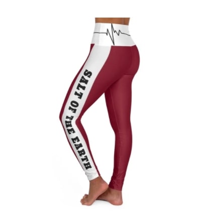 Leggings Full Length High-Waisted Burgundy & White “Salt Of The Earth/Matthew 5:13” With Bordered Heartbeat Graphic
