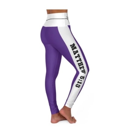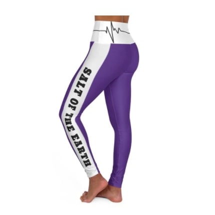 Leggings Full Length High-Waisted Purple & White “Salt Of The Earth/Matthew 5:13” With Bordered Heartbeat Graphic