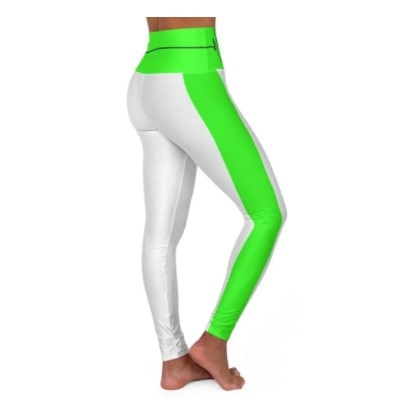 Leggings Full Length High-Waisted White & Neon Green With Bordered Heartbeat Graphic
