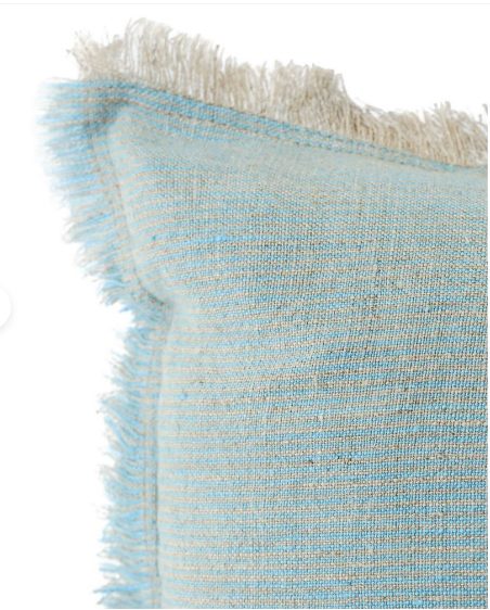 Our Blue + Beige Cross-dye So Soft Linen Pillow is Soo soft- you won’t believe it’s linen! This yarn alternates 2 different colors (Blue + Beige) which gives it the Cross-dye effect. This yarn has a slight nub which gives it a beautiful natural texture. Edges have a self-fringe on all sides.