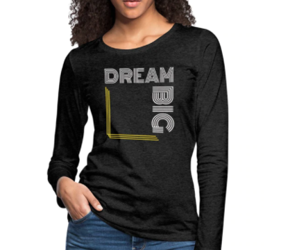 Long Sleeve T-Shirt ” Dream Big White & Gold” In Charcoal Gray