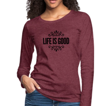 Long Sleeve T-Shirt ” Life Is Good” In Heather Burgundy