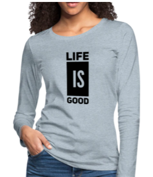 Long Sleeve T-Shirt “Life Is Good” In Heather Ice Blue