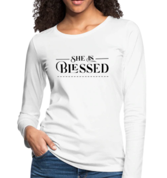 Long Sleeve T-Shirt “She Is Blessed” In White
