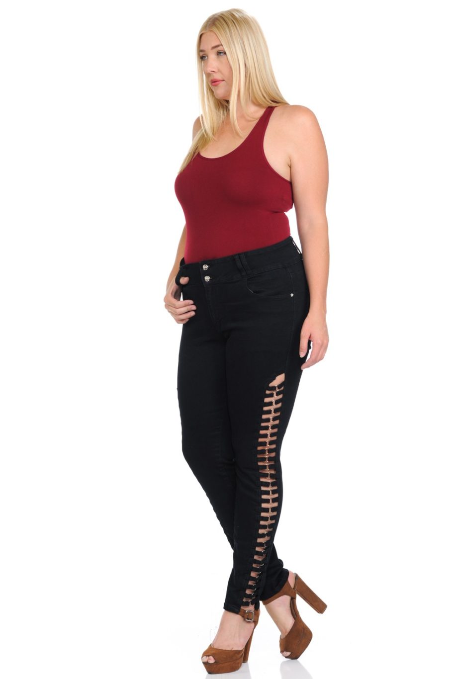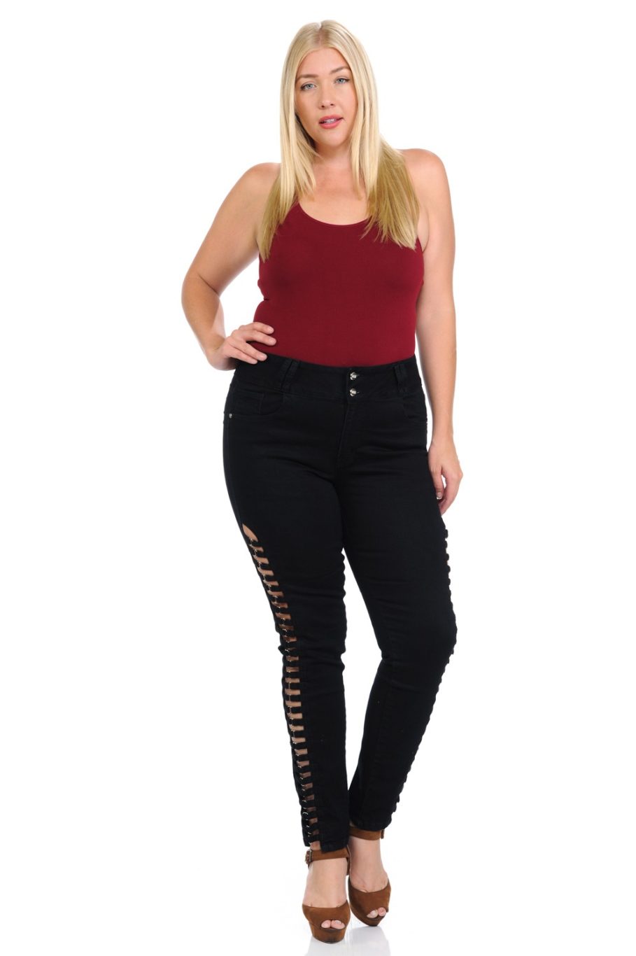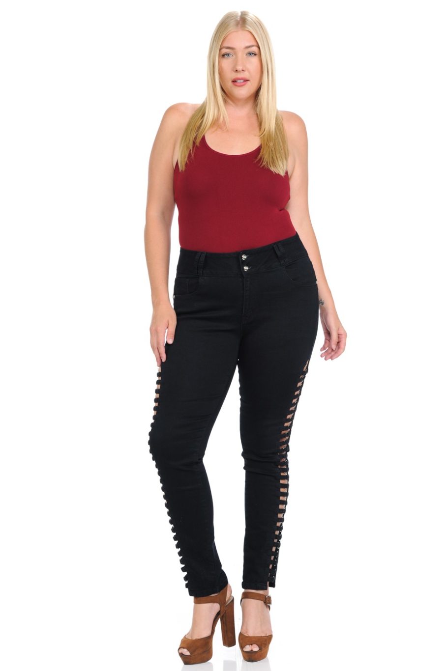 Are you ready to wear the best jeans you have ever imagined? With the new M.Michel Jeans collection, you will have fashion, comfort, quality and more… All in the same pair of Jeans! This Black Plus Size Skinny Jeans are the top of denim fashion, with the best Push Up and Amazing Fit you need to feel awesome to achieve all your goals and dreams.