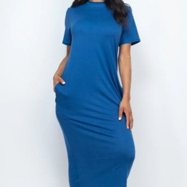Maxi Dress Side Pocket T-Shirt Design In Blue