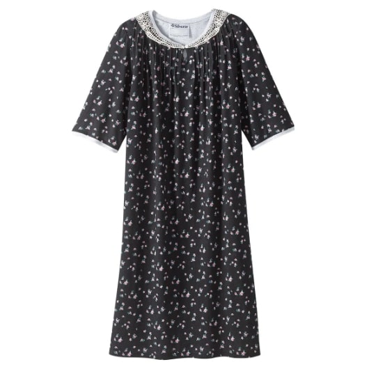 Nightgown Women’s Assisted Dressing Knit Open Back Lace Trimmed Romantic Ditzy Design