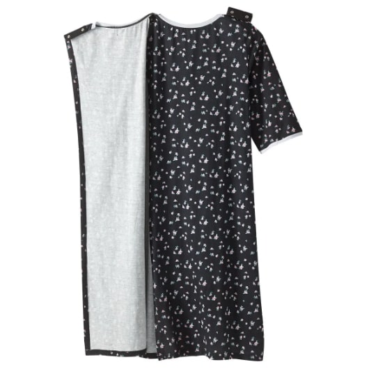 Senior Women’s Open Back Printed Nightgown is ideal for assisted dressing. This nightgown features a discrete and generous back overlap for additional coverage with snap closure at each shoulder for caregivers to easily secure this handicap garment.