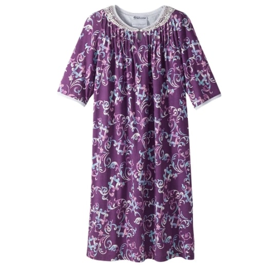 Nightgown Women’s Assisted Dressing Knit Open Back Lace Trimmed Soft Scroll Design
