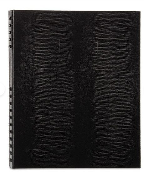 Durable hard cover provides increased writing stability. Twin-wire binding allows book to lie flat when open. Includes colored, self-sticking tabs/labels to customize index, cover and spine. Microperforated pages. Space for date. Double-sided pocket. Archivable.