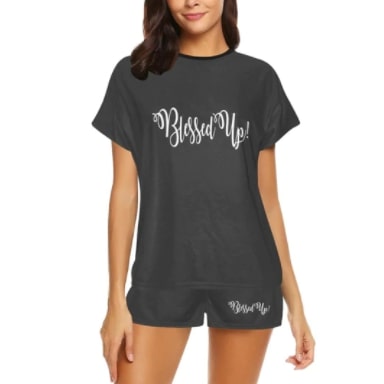 Pajama Set Shorts Charcoal Blessed Up Graphic