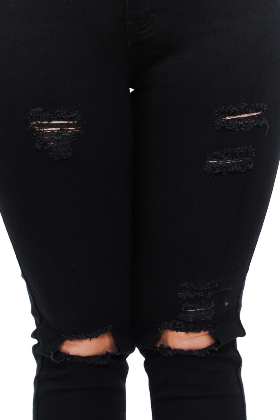 -Black seams. Ripped details at the knees