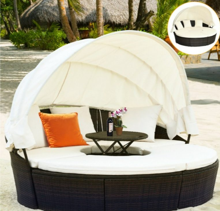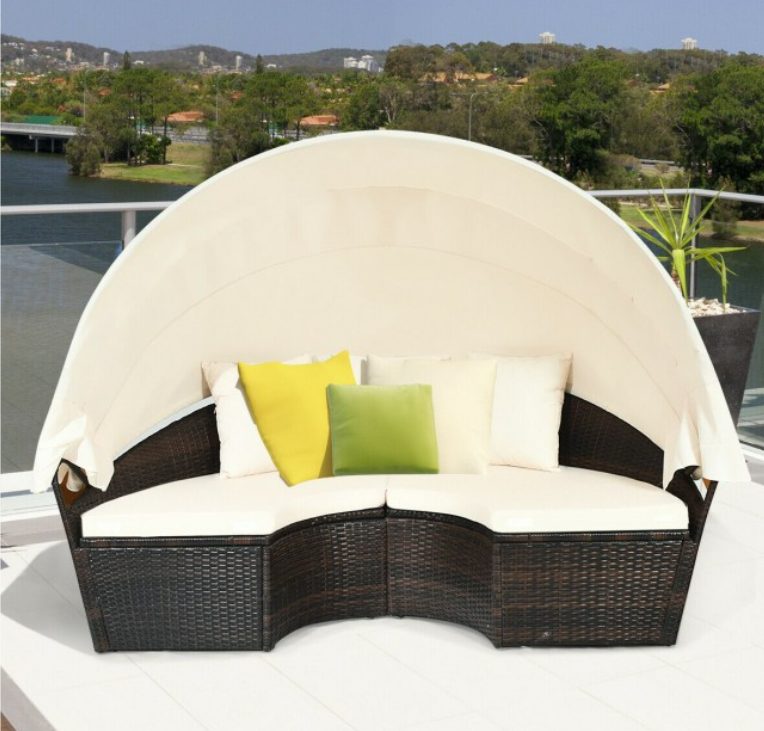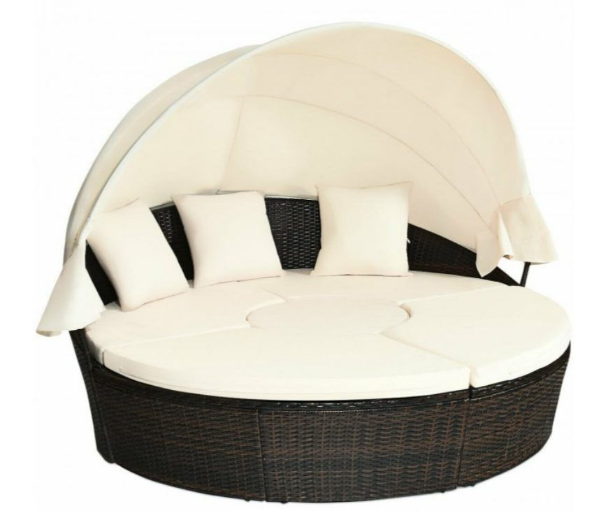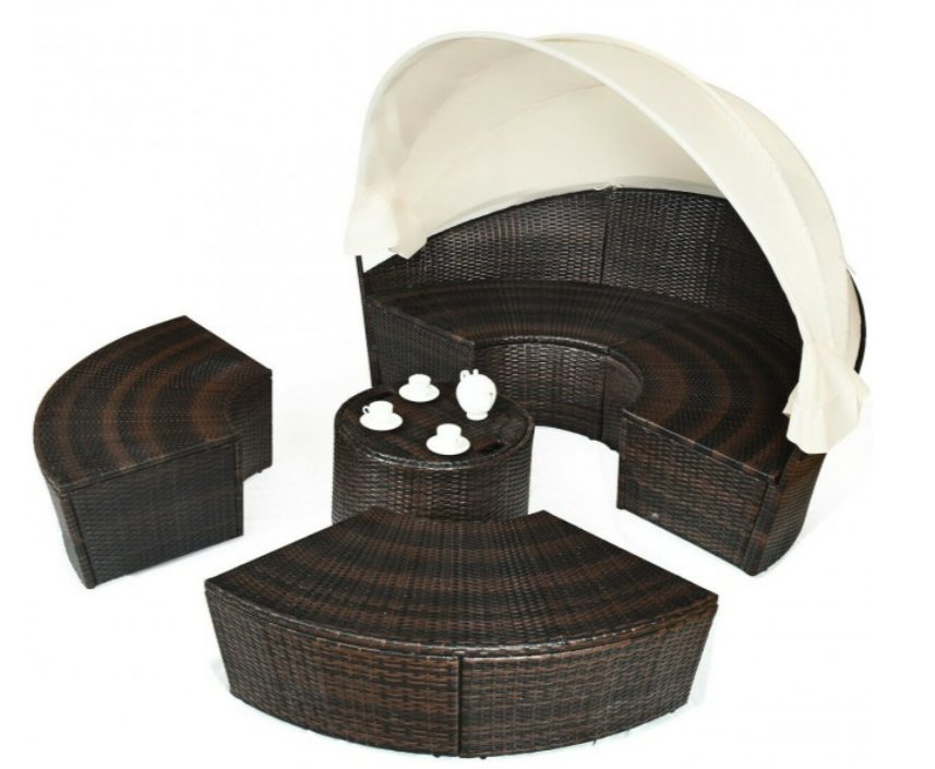 Patio Round Daybed Rattan Furniture Sets with Canopy