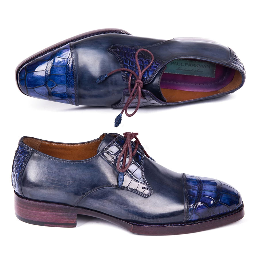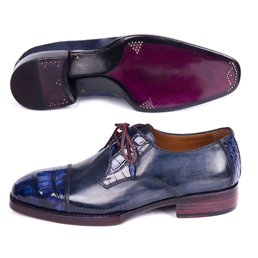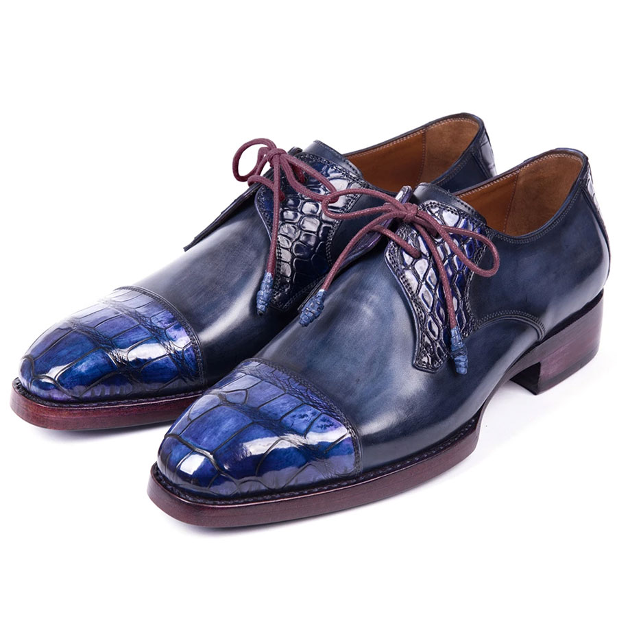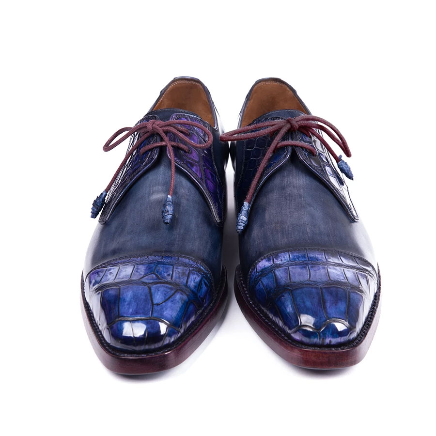 Paul Parkman Blue Genuine Crocodile & Navy Calfskin Captoe Derby Shoes (ID#877-BLU)