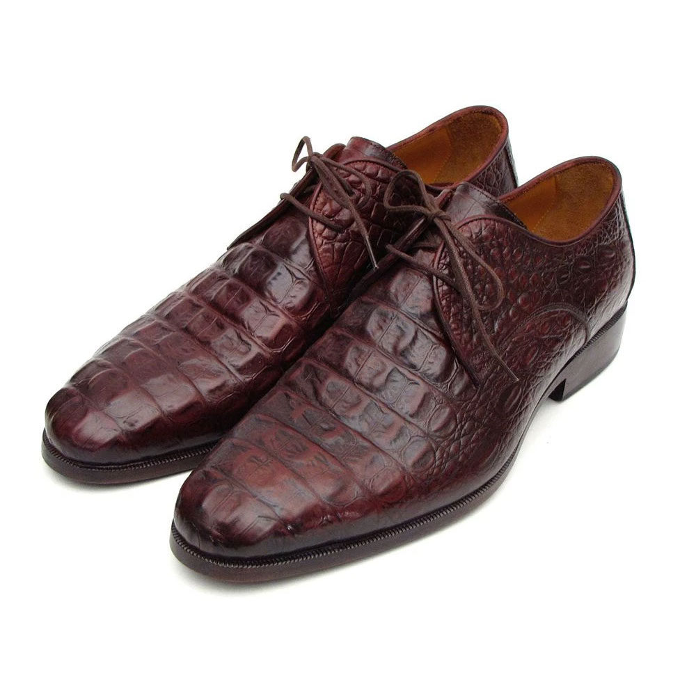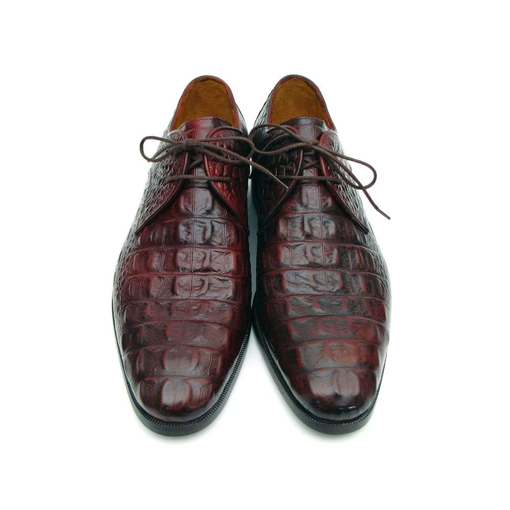 Paul Parkman Men’s Brown & Bordeaux Crocodile Embossed Calfskin Derby Shoes (ID#1438BRD)