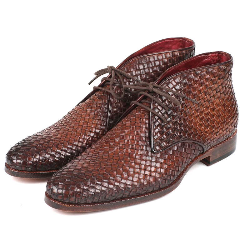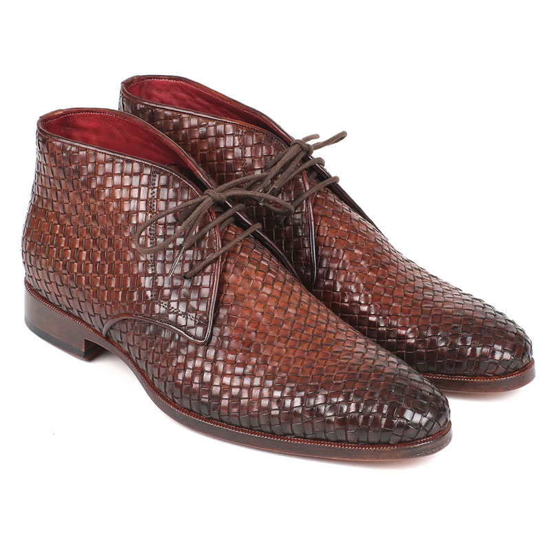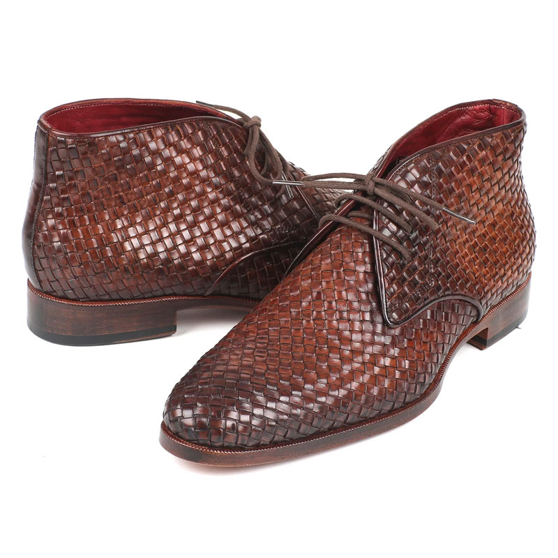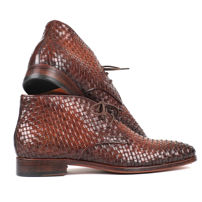 Paul Parkman Men’s Brown Woven Leather Chukka Boots (ID#CK82WVN)