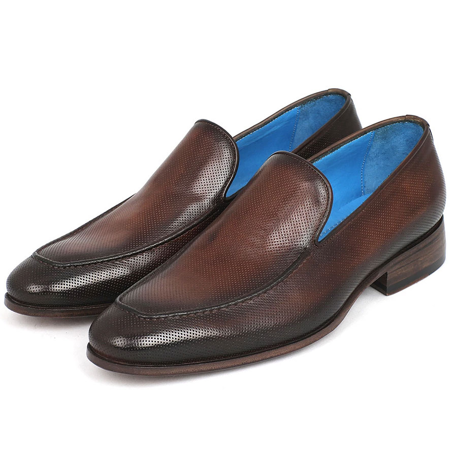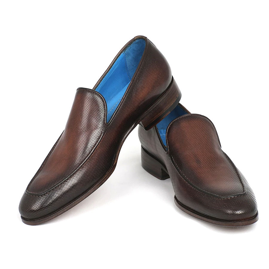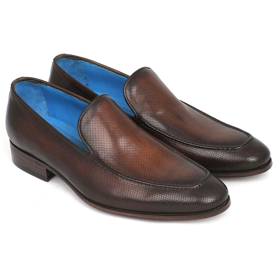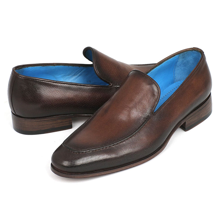 Paul Parkman Perforated Leather Loafers Brown (ID#874-BRW