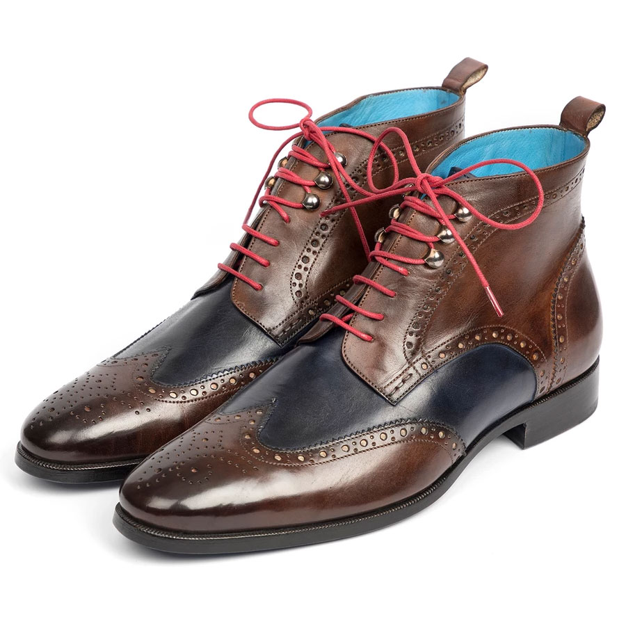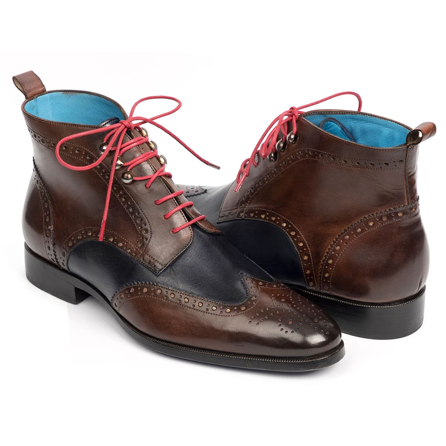 Paul Parkman Wingtip Ankle Boots Dual Tone Brown & Blue (ID#777-BRW-BLU)