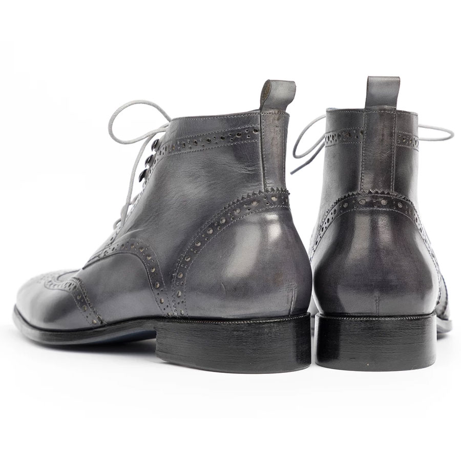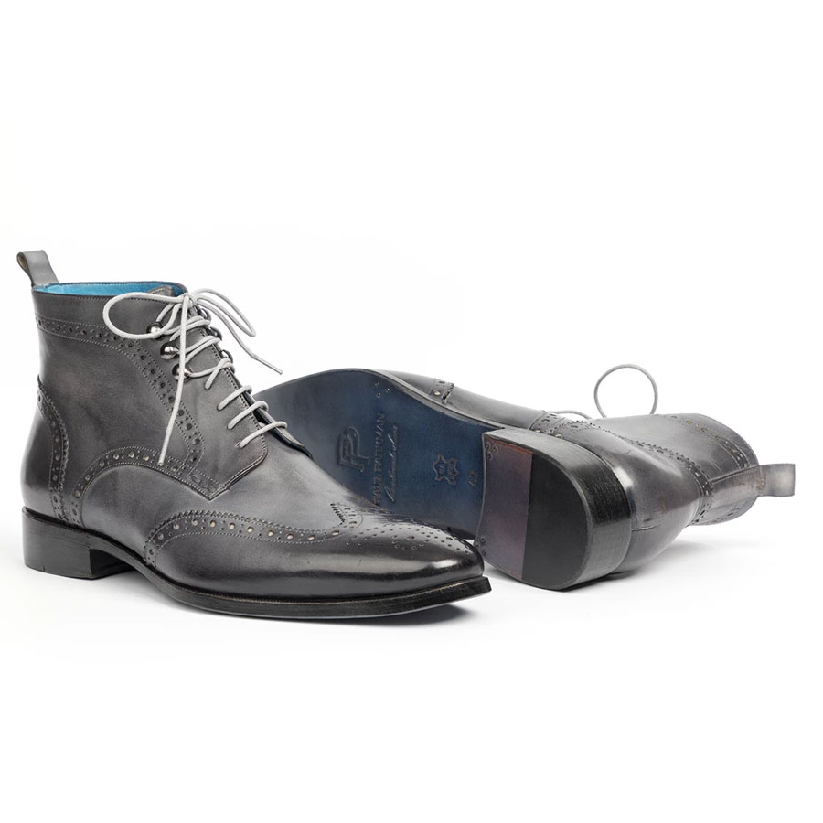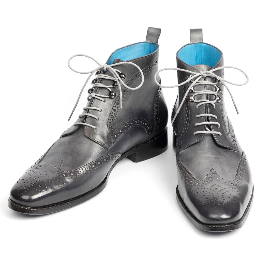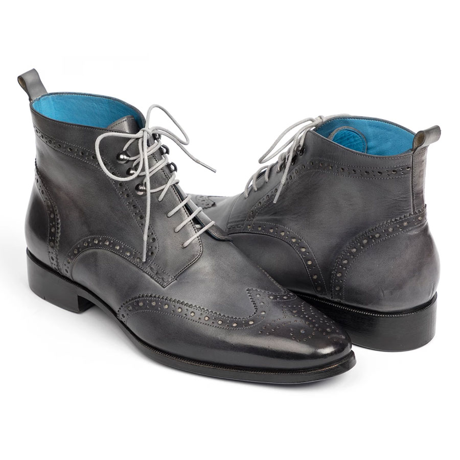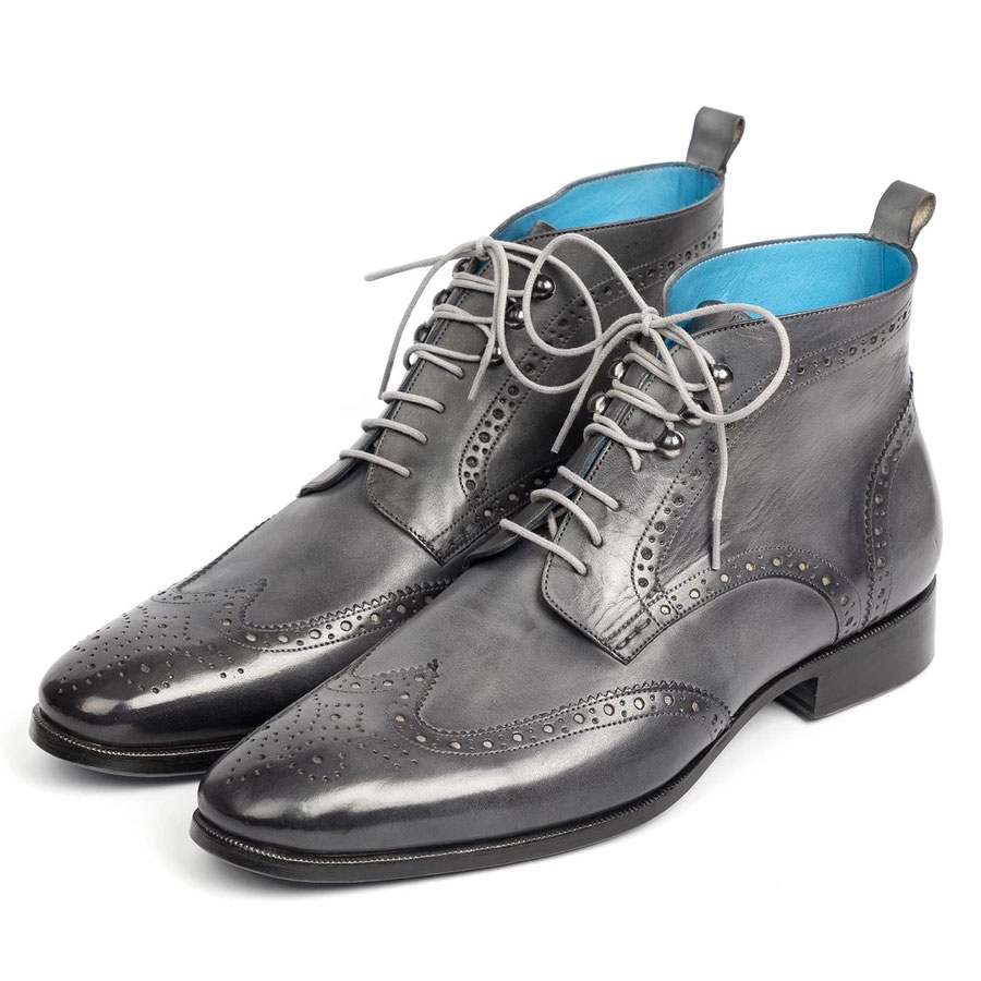 Paul Parkman Wingtip Ankle Boots Gray Hand-Painted (ID#777-GRAY)
