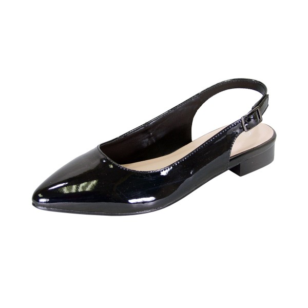 PEERAGE Fay women’s wide width patent leather pointed-toe slingback flat is the perfect option for casual or work attire. This ladies 0.5” leather stack heel adjustable slingback provides all day comfort and support to tackle both professional work environments and casual everyday life.