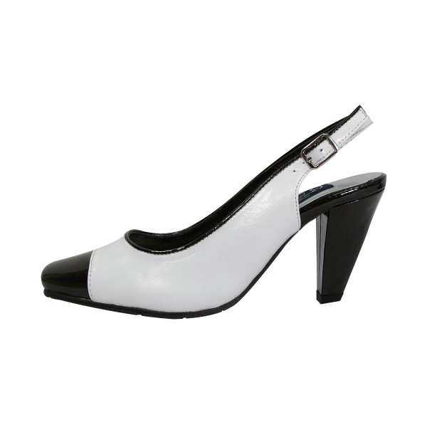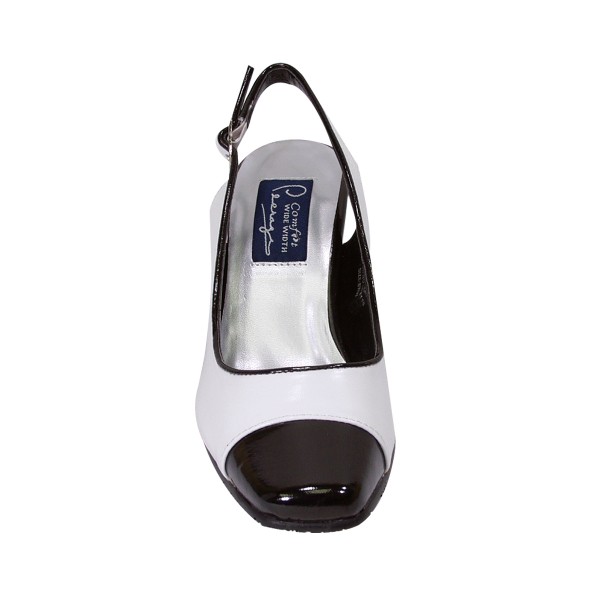 PEERAGE Roxy Have some fun and add a little pizzazz to your look with Peerage Roxy women extra wide width evening dress pump. This ladies 3″ high heel sheepskin leather pump with contrasting black and white detail on a square toe with an adjustable slingback is sure to be a head turner.