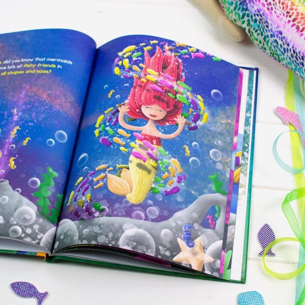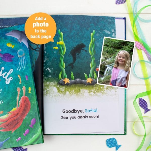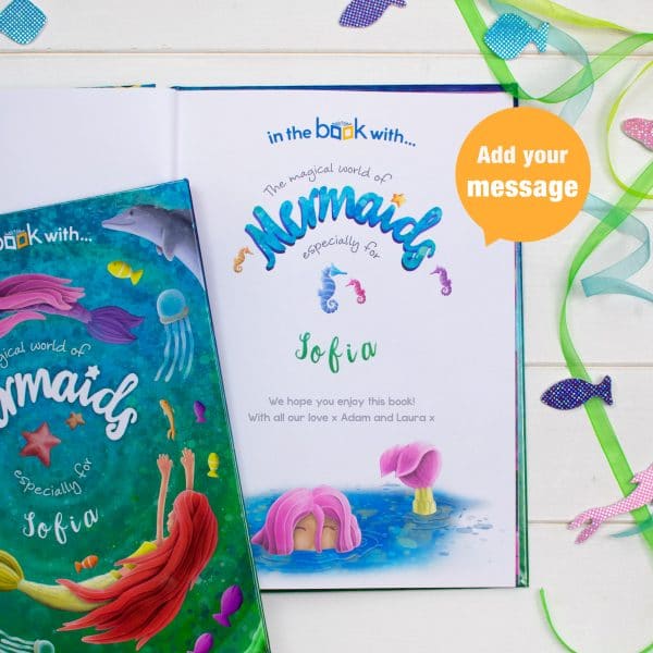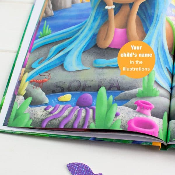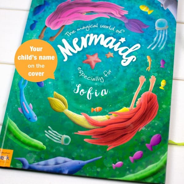 This personalized book opens up a whole new world to children as they get to meet the magical and mysterious mermaids! Each beautifully designed page is personalized with the child’s name in both the text and illustrations, as they get to find out more about mermaids and what they like to do! There are even activities throughout the book for children to engage with. A perfect gift for children who are mer-crazy. Includes special pages for a personal message and an optional photo. This personalized book is available in softback and hardback with the option to add a gift box.