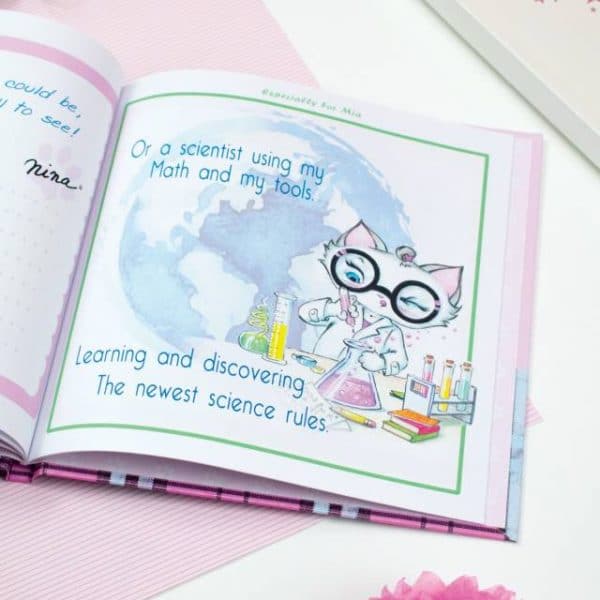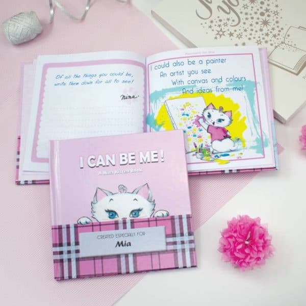 Children have an almost unlimited potential, and it is very important for them to realize the opportunities that could await them in the future. The ‘I Can Be Me!’ personalized book from the Nina Kitten series does exactly that, as the cute Nina Kitten imagines different jobs they could do when they grow up. From doctors and scientists to gymnasts and artists, the book will prove to your little one that the possibilities for them are endless and that they should always follow their dreams. Additionally, there is space on the page next to each illustration that allows the child to write down their own dreams and aspirations on what they want to be. An interactive book that is perfect for little dreamers who will love to see their name on the front cover and at the top of every page. A personal message to the recipient can also be added on the opening page.