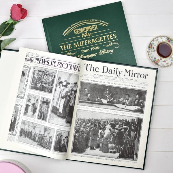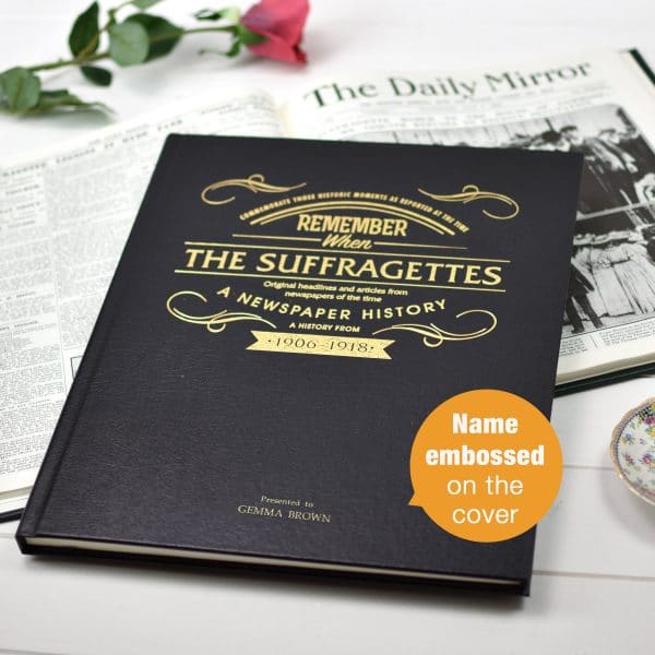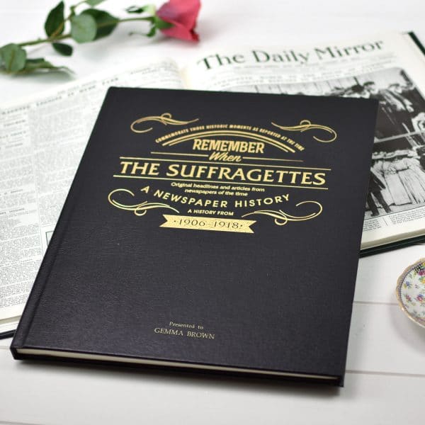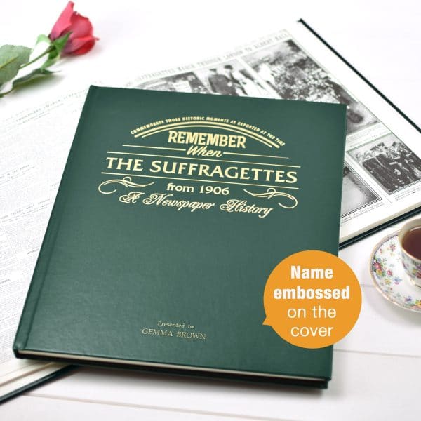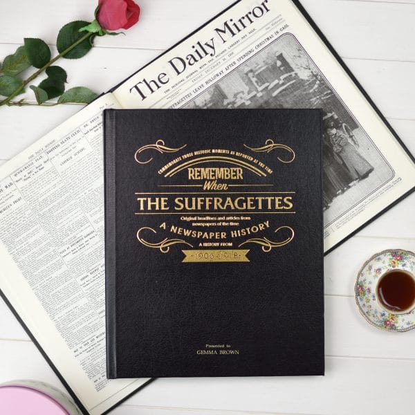 “I would rather be a rebel than a slave”. Words spoken by the leader of the British suffragette movement Emmeline Pankhurst during a speech to her followers. The Women’s Suffrage Movement Book commemorates one hundred years since Parkhurst and her fellow suffragettes helped bring about the right for women to vote in the UK. It contains 180 pages worth of newspaper articles that have been carefully handpicked from the archives, providing a fascinating insight into not only the struggles of the suffragettes who fought for equality but also the often-prejudiced views of journalists at the time. The book begins with stories from 1906, right the way through to the historic decision in 1918 that would change British society forever. This coffee book is bound in a choice of hardback green leatherette, or genuine black leather cover and is personalized with the recipient’s name and a message on the inside page. Their name can also be embossed on the front cover for an additional $10.00 RSP if the leather cover is chosen, this embossing is included for FREE