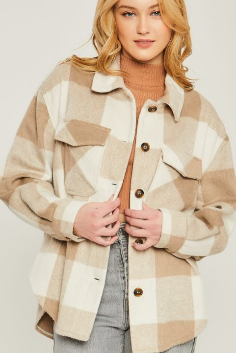 Stay warm and stylish with this Large Pocket Flannel Jacket. Oversized and comfortable, this jacket is a great addition to your Fall fashion.