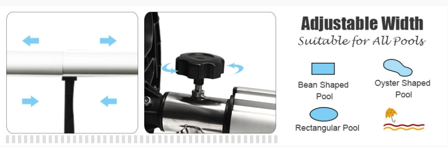 - Adjustable Width for All Pools: This pool cover reel is adjustable according to the width of your swimming pool and pool cover. It fits all shaped in-ground pools whose width is 16-21 feet, including rectangular, bean-shaped, oyster-shaped, or free form pools.