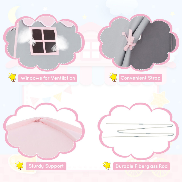 It’s easy to put together, disassemble and store. More importantly, the sturdy fiberglass frame wrapped in soft 100% cotton canvas not only ensures great support but also protects kids’ delicate skin. The anti-slip bottom design effectively prevents the playhouse from sliding. You can also wash the tent to keep it clean.
