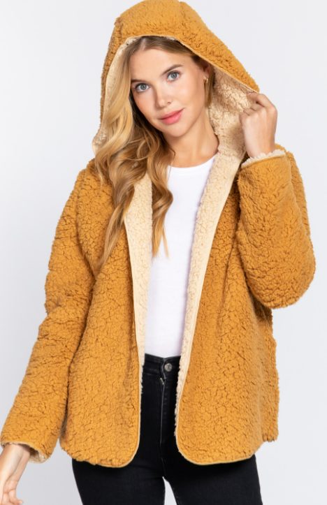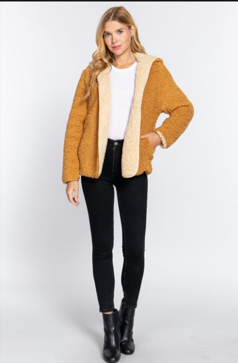 Reversible Jacket Faux Fur Hoodie In Mustard & Butter
