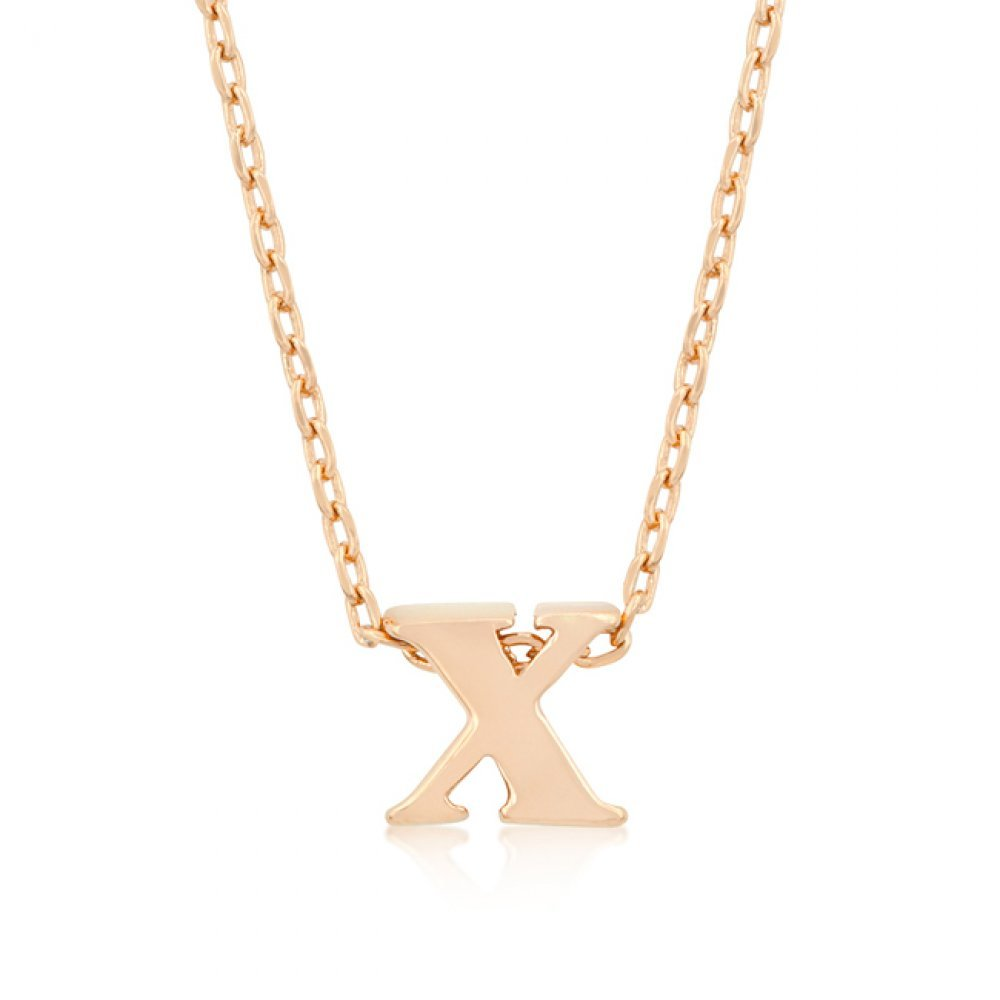 Rose Gold Bonded Simple X Initial Pendant with Lobster Clasp set in Rose Goldtone. All pendants come with 18 inch chain with 2 inch extender.. Crafted in a vibrant rose gold tone this adorable initial necklace is a must-have for everyday. Classically on-trend it??s perfect for layering on top of other delicate pieces.