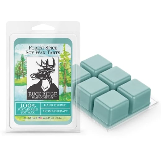 Forest Spice Scented Wax Melts are scented with a blend of essential oils that match our other Forest Spice products. The unique natural outdoor scent is a blend of Lavender, Palmarosa, Cedarwood, Geranium, Clary Sage, Benzoin, and Ylang Ylang Essential Oils for a woodsy scent with subtle floral undertones. Aromatherapists state that a number of mood-enhancing properties can be found in all of these essential oils helping to relax, calm, clear the mind, and aid in making you feel more alert like a brisk walk in the woods.