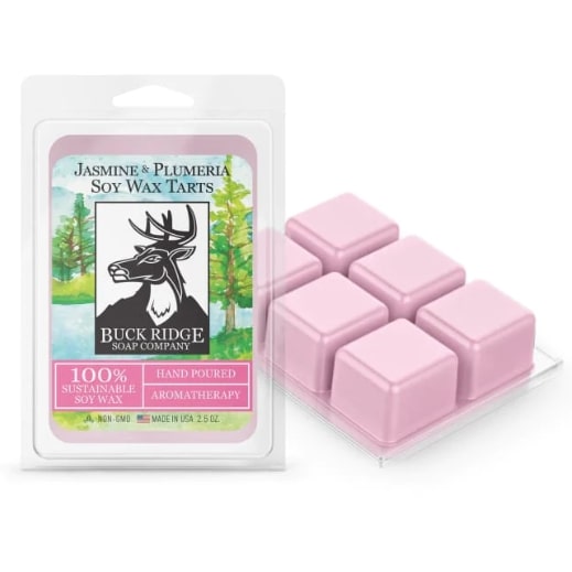 Jasmine and Plumeria Scented Wax Melts smell just like our other Jasmine and Plumeria products. The scent is an exotic and fresh floral that isn’t too strong.
