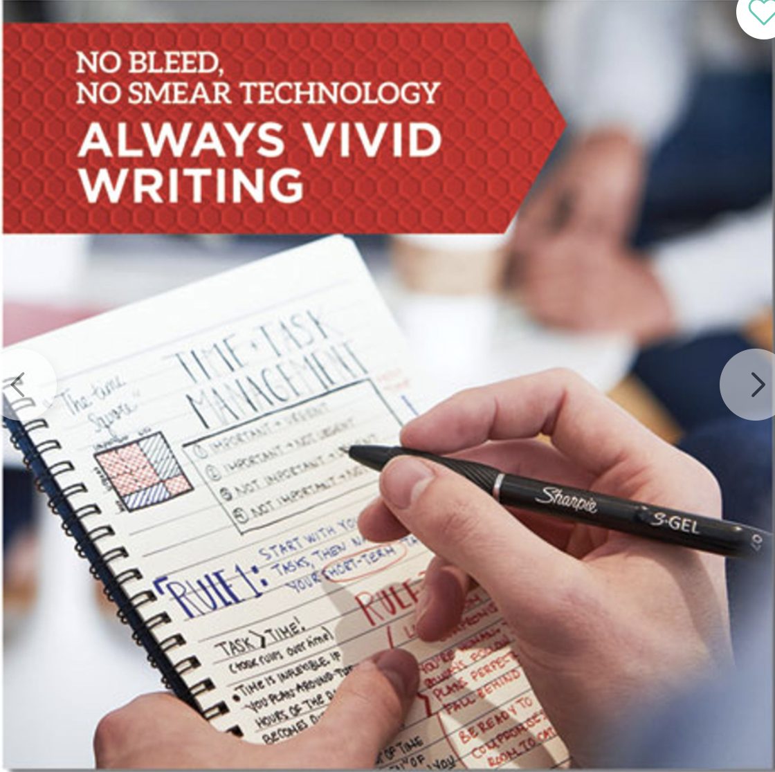 Sharpie S·Gel is a high performance gel pen that delivers a bold vivid impact with no smear, no bleed gel technology.