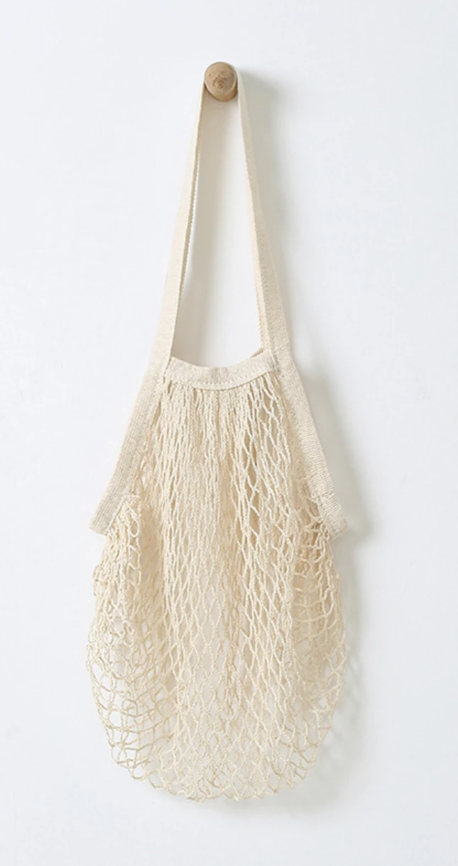 These mesh shopping bags are not limited to the farmers market…..use them as a beach bag, snack bag in the car or even travel laundry bag!