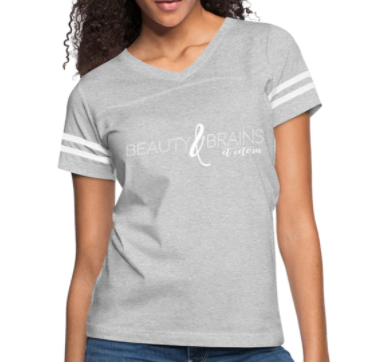 Short Sleeve T-Shirt “Beauty & Brains Et Cetera” Graphic Vintage Sport Design In Heather Gray/White