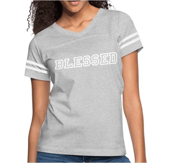Short Sleeve T-Shirt “Blessed ” Graphic Vintage Sport Design In Heather Gray White