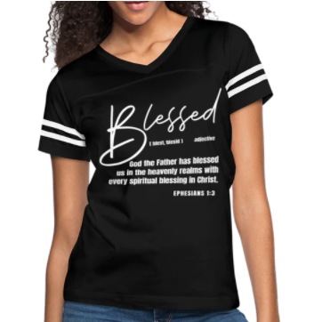 Women’s T-Shirt, Blessed with Every Spiritual Blessing Vintage Sport Tee. Straight from the pages of yesteryear comes this style-refined vintage T-shirt. The poly-cotton blend makes for an incredibly soft and comfortable wear, and added features such as the EasyTear label and double-needle stitching ensure a durable and fashionable wear for years to come.