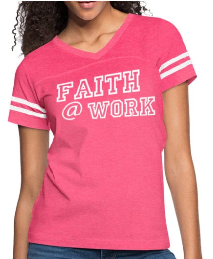 Short Sleeve T-Shirt “Faith @ Work ” Graphic Vintage Sport Design In Vintage Pink White