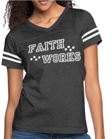 Short Sleeve T-Shirt “Faith Works ” Graphic Vintage Sport Design In Vintage Smoke White