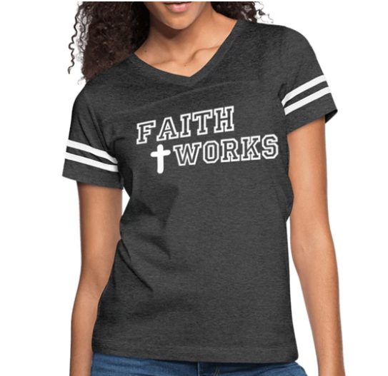 Short Sleeve T-Shirt “Faith Works” Graphic Vintage Sport Design In Vintage Smoke White