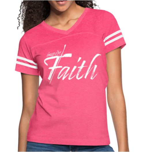 Short Sleeve T-Shirt “Inspire Faith Vintage” Graphic Vintage Sport Design In Pink White