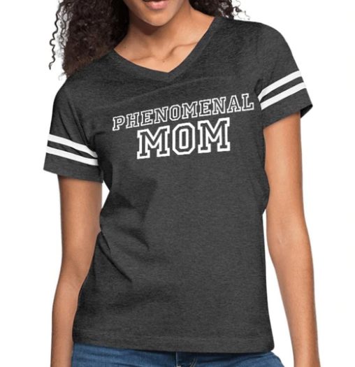 Short Sleeve T-Shirt “Phenomenal MOM” Graphic Vintage Sport Design In Vintage Smoke White