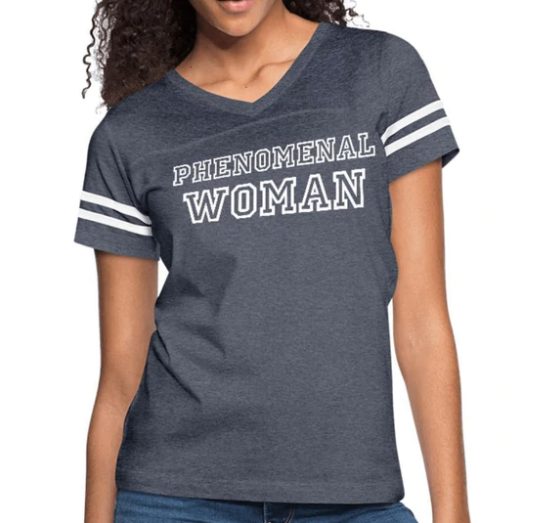 Short Sleeve T-Shirt “Phenomenal Woman” Graphic Vintage Sport Design In Vintage Navy White